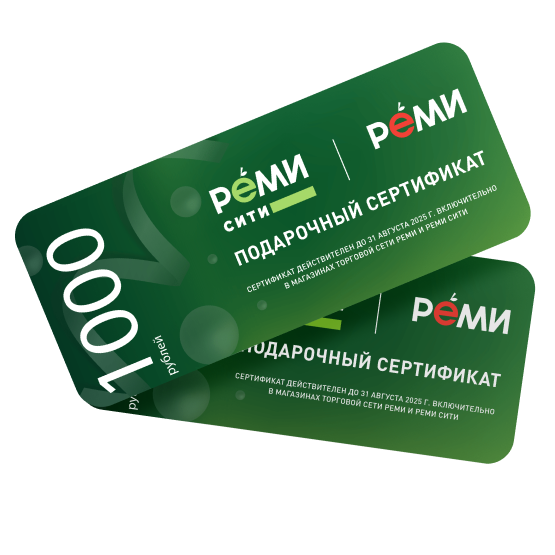 2. Подарочные сертификаты в Реми и РемиСити на сумму 1000 рублей;